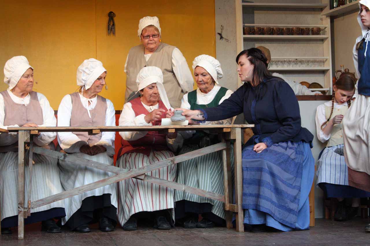 När männen lurats att skriva på för armén samlas kvinnorna i byn för att skriva protestbrev till landshövdingen. Cecilia Karlsson gestaltar kloka prästdottern Lovisa.