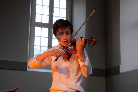 Det glänser i ögat. Låt oss säga att det är speglingen av den röda flodlampa som lyser upp violinisten, som om solnedgången dröjer kvar.