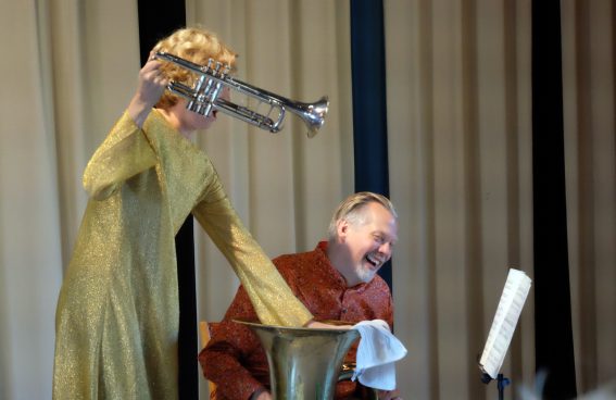 Tora Thorslund och Carl Jakobsson från Kungliga Hovkapellet gästar Östergötlands Musikdagar med en blåsarkonsert för barn på Norrköpings Konstmuseum. Den här tisdagsmorgonen ger de två konserter i rad. Senare i veckan ges en i Linköping.