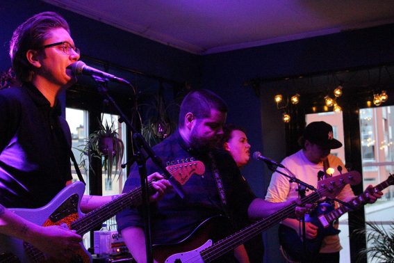 Pang! Isfruun på Arbis bistroscen. Martin Boström, Olle Rosén, Sofia Brennwald och Richard Ritzman.