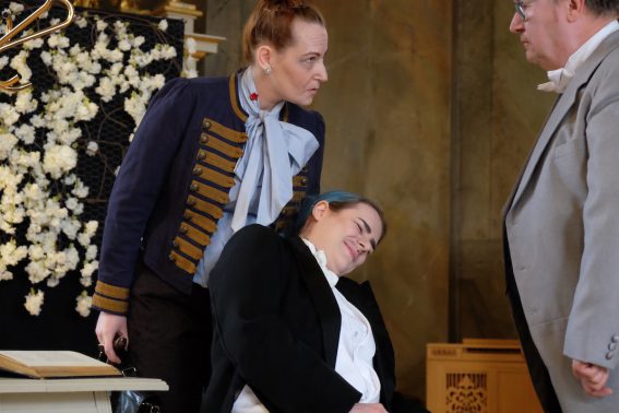 Spöksonaten. Direktör Hummel, Johansson och Bengtsson – spelas av Paulina Vuori, Hanna Bengtsson och Per-Olof Engström.